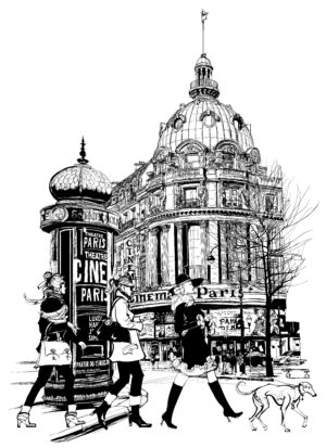 Tandis que Madame promène son chien, un boudin noir nommé Byzance¹, elle ira ce faisant contempler au Chic Parisien, boutique du centre ville, les dernières inspirations imprimées ou brodées de ces tenants inaccessibles de l’harmonie des couleurs et de l’agencement des matières que sont les créateurs de la mode. Au Chic Parisien c’est un peu du boulevard Saint-Germain ou de celui des Italiens, du Faubourg Saint-Honoré et d’un dimanche sur les Champs-Élysées. À Vierzon. Soupir…