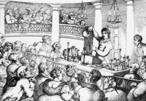 Fig. D. Marchand d’orviétan faisant l’article devant un parterre de malades.