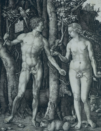 Fig. A. Adam et Eve déjeunant devant l’arbre, Albrecht Durer, 1504.