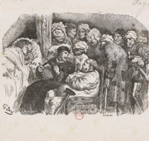 Fig. A. Rabelais délivrant une ordonnance. Gustave Doré, 1854.
