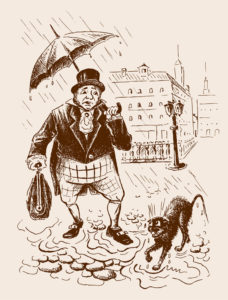 Comme il est d’un esprit très pratique et qu’il ne saurait s’en aller faire la bête à deux dos débraillé, cet homme des années surannées va se doter d’un accessoire lui permettant d’emporter élégamment avec lui slip kangourou de rechange, chaussettes propres et brosse à dents, et créer pour ce faire le baise-en-ville, ainsi nommé puisqu’il est utilisé dans un cas et un seul : forniquer au bourg¹.