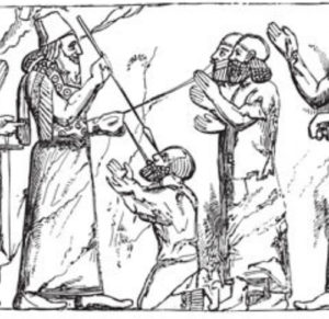 Fig. A. Noble Babylonien mécontent tançant son coiffeur.