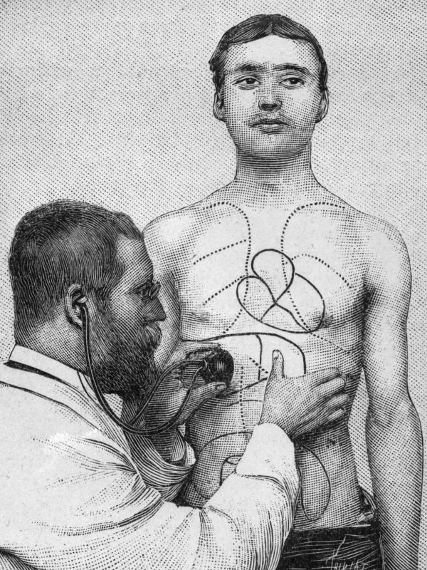 Il se raconte chez les carabins que le Breton eut l’idée de l’engin en regardant des mioches jouer à je-t’envoie-des-messages-en-morse-en-tapotant-sur-une-poutre-de-bois-sur-laquelle-tu-colles-ton-oreille (sorte d’ancêtre du téléphone avec deux pots de yaourts et un fil de pêche qui n’existait pas encore en 1817), méthode de transmission du son qu’il utilisa dans l’instant en auscultant une patiente avec une feuille de papier roulée en cylindre¹.