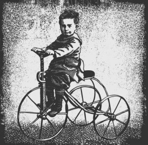 Fig. A. Raymond Poulidor sur sur premier vélo. Prêt mairie de Masbaraud-Mérignat.
