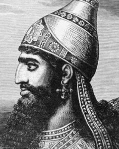 Fig. 1. Nabuchodonosor II allant chercher de l’eau dans l’Euphrate. Notez son seau-couvre-chef. Musée de Babylone.